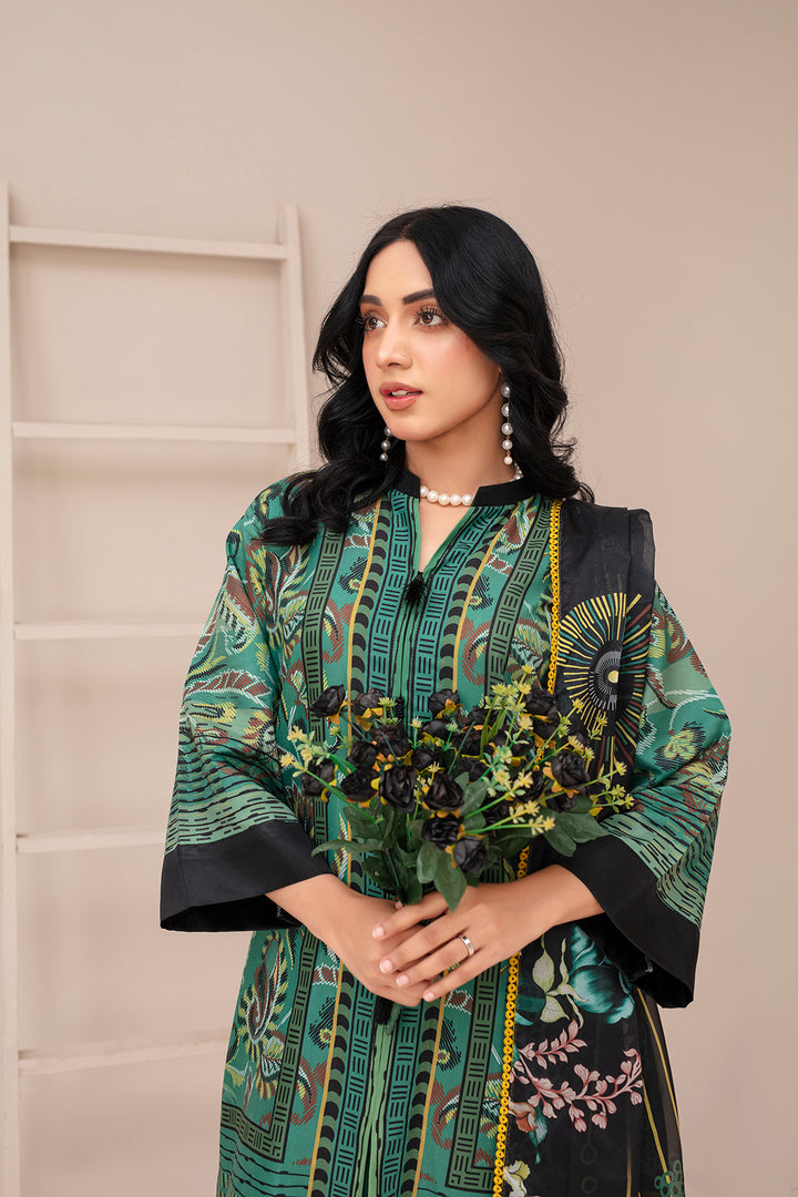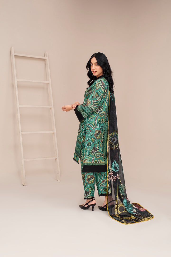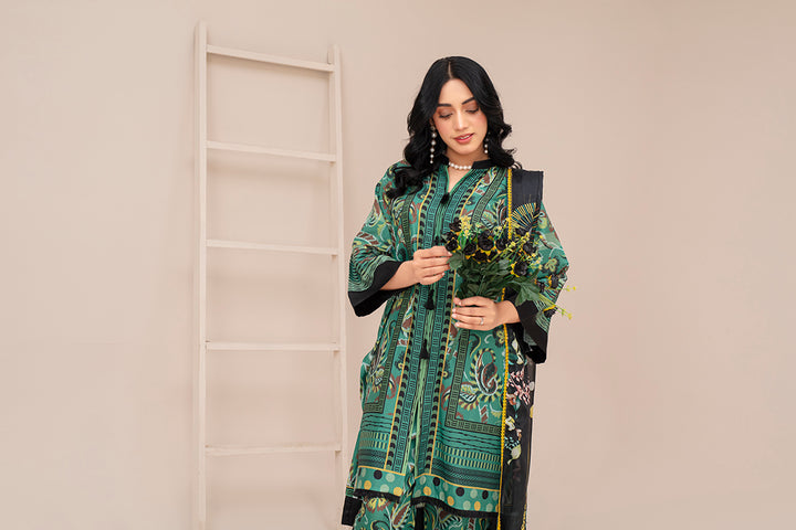This elegant ensemble from MALIKANAZ features a Sabeel Lawn print shirt for a stylish look, paired with a soft, flowing Silk dupatta for added grace. The matching Sabeel Lawn print trousers complete the set, offering both comfort and style in one beautiful package. Perfect for any occasion, this set combines contemporary design with timeless elegance.