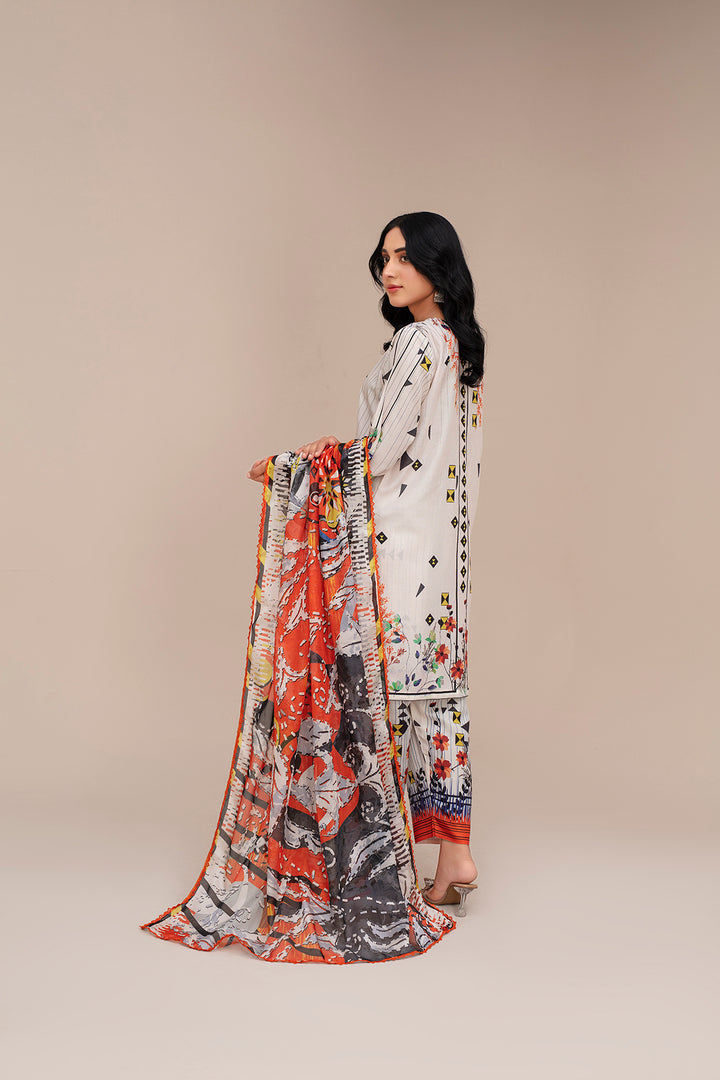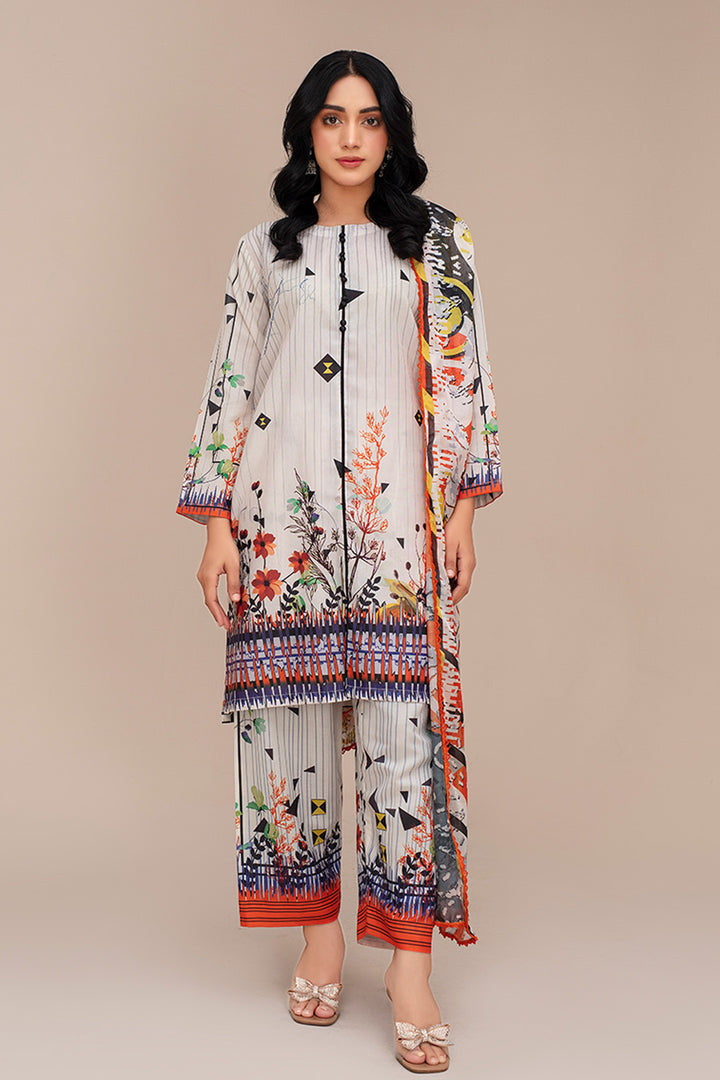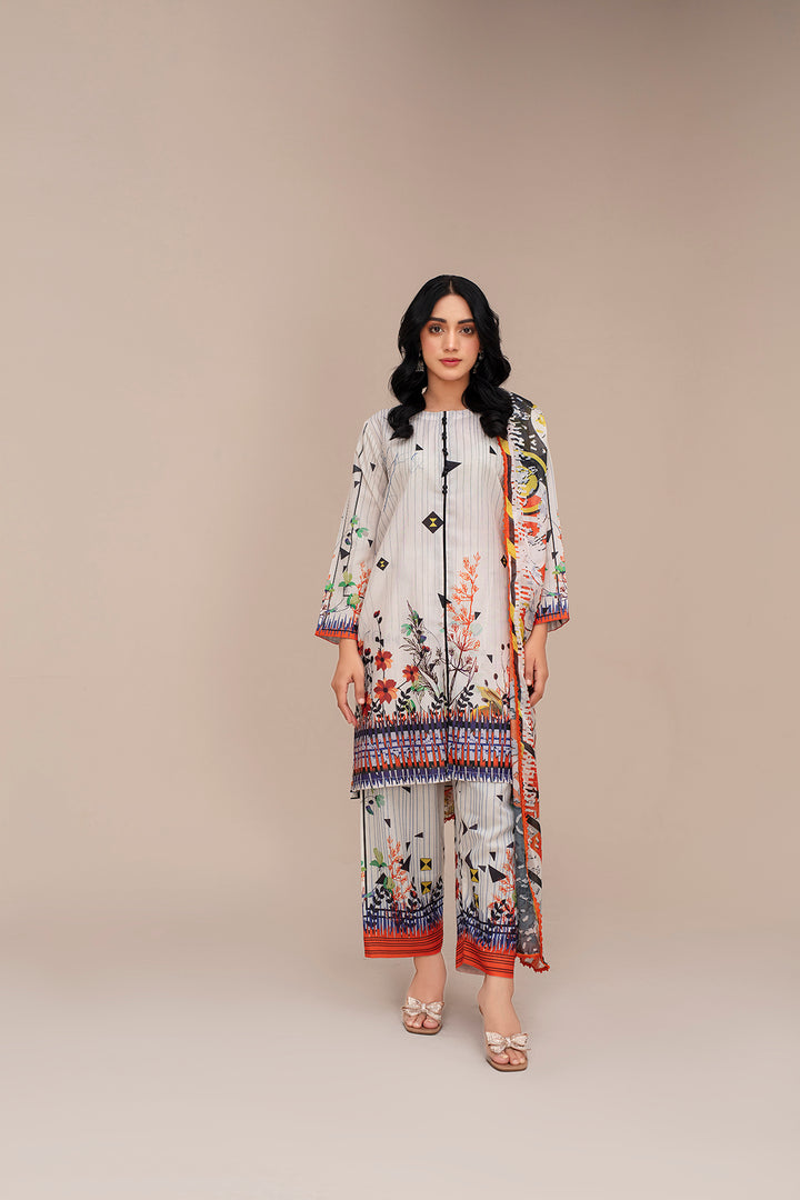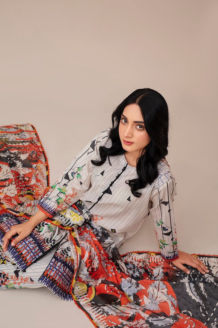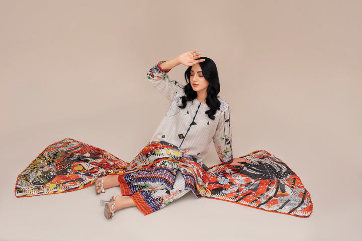 This elegant ensemble from MALIKANAZ features a Sabeel Lawn print shirt for a stylish look, paired with a soft, flowing chiffon dupatta for added grace. The matching Sabeel Lawn print trousers complete the set, offering both comfort and style in one beautiful package. Perfect for any occasion, this set combines contemporary design with timeless elegance.